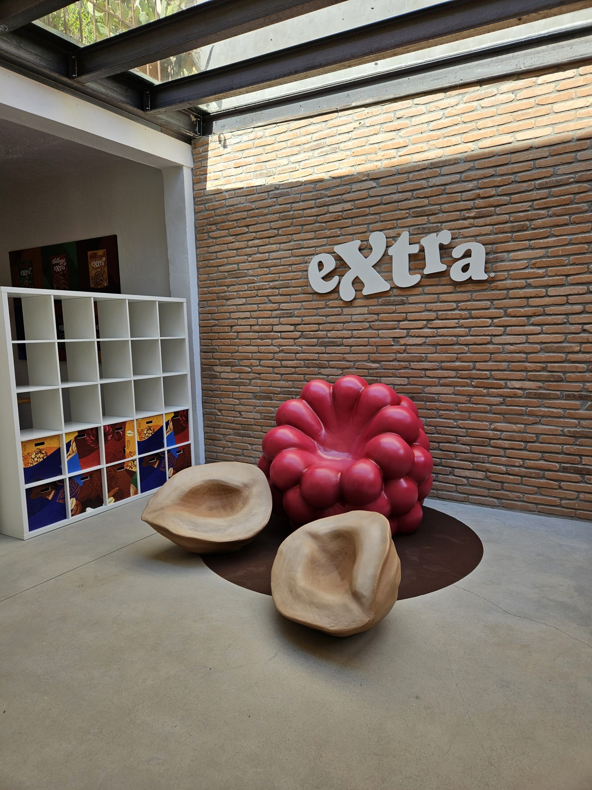 Un allestimento immersivo è stato realizzato all’interno dell’Hangar Voghera in occasione della Milano Design Week per il progetto Kellogg’s Extra Hub. L’intervento ha previsto la creazione di un ambiente scenografico attraverso sculture oversize in polistirolo CNC, elementi resinati e verniciati e strutture tessili, combinati con materiali come legno, plexiglass e bilaminato. Il progetto ha trasformato lo spazio in un’esperienza interattiva, caratterizzata da un forte impatto visivo e da un articolato lavoro su volumi, texture e percezione.